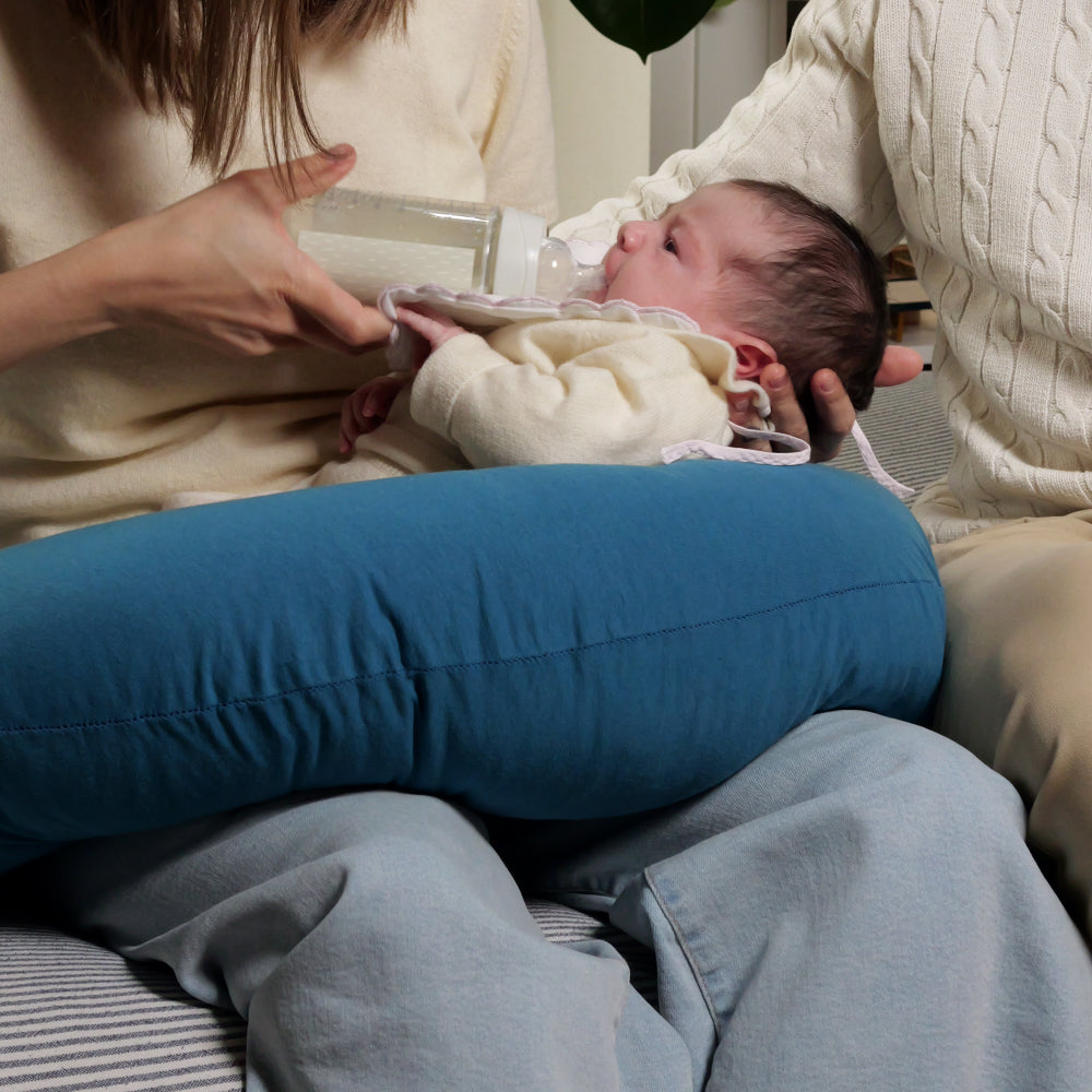 Dopo la gravidanza, Mirai si trasforma facilmente in un comodo cuscino per l'allattamento, ti basta sfoderare uno dei due cuscini per averne uno pronto per allattare il tuo piccolo.