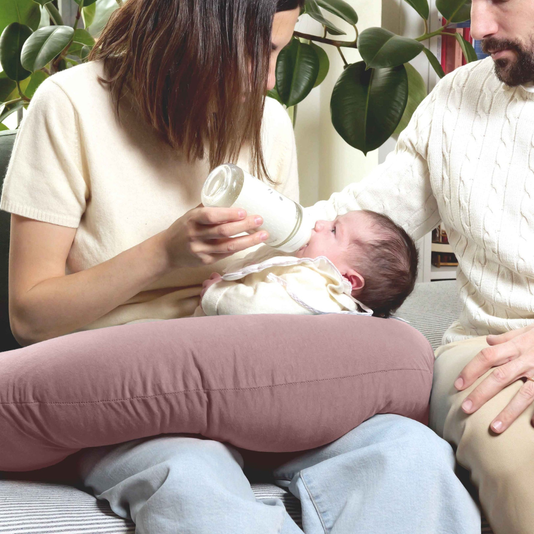 Dopo la gravidanza, Mirai si trasforma facilmente in un comodo cuscino per l'allattamento, ti basta sfoderare uno dei due cuscini per averne uno pronto per allattare il tuo piccolo.