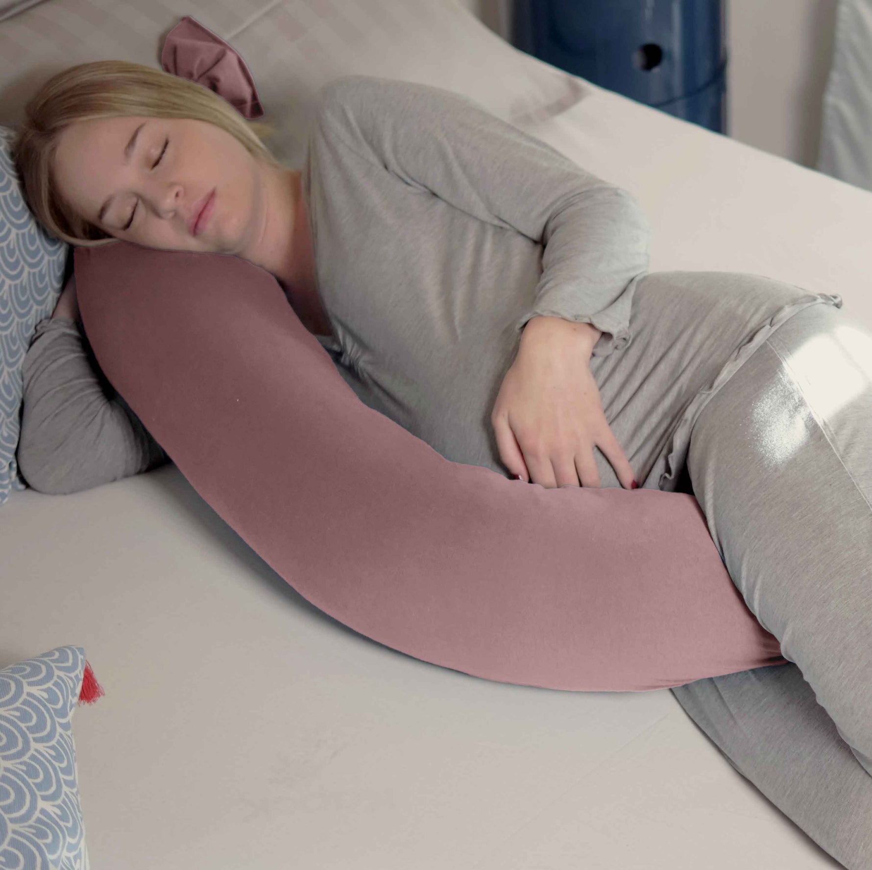 Questo cuscino è progettato per offrire un supporto ottimale alla schiena, adattandosi alle esigenze individuali in ogni fase della gravidanza. Grazie alla sua forma versatile e alla possibilità di regolazione, permette di mantenere la posizione laterale sinistra durante il sonno, riconosciuta dai medici come la migliore per promuovere una buona circolazione sanguigna e garantire il massimo benessere sia per la madre che per il bambino.